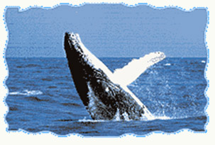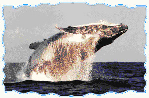 The Humpback Whale is easy to recognize because of their extremely long pectoral fins, in fact its scientific name is Megaptera novaeangliae which means "Of Big Wings". These Whales reach more than 16 mts. length and could weigh 40 tons. They are usually dark blue, gray or black colored on their back, but their fins, sides and belly had a big number of white spots and some scars.